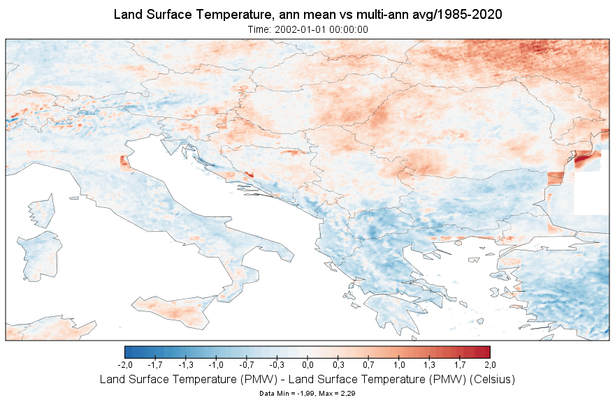 Одступање годишњег сунчевог зрачења базирано на сателитским подацима ЕУМЕТСАТ